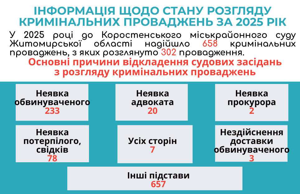 ІНФОРМАЦІЯ ЩОДО СТАНУ РОЗГЛЯДУ КРИМІНАЛЬНИХ ПРОВАДЖЕНЬ ЗА 2025 РІК
